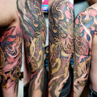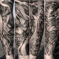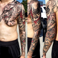 Religious and cultural symbols are popular tattoos. Fu dogs, temples, oni masks, or the Buddha represent religious symbols and cultural values, protection, or personal expressions of individual creativity. Moreover, this art represents the pantheon of pan-Asian images that attract patrons of all backgrounds and from all countries.