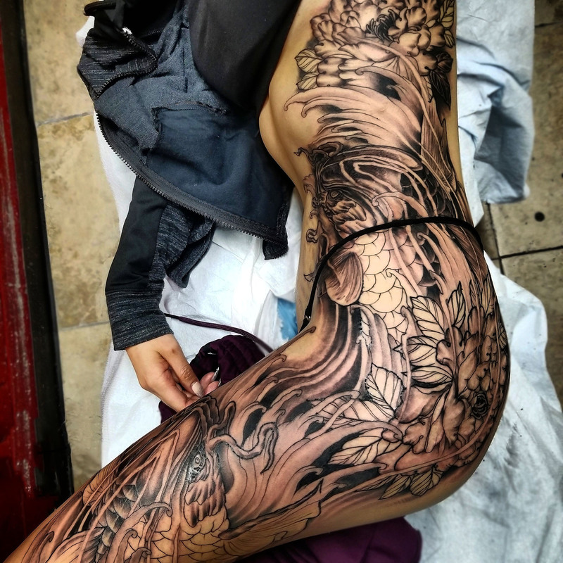 Inkfiend Art Studio provided Richard an avenue out of the streets and avoid the high recidivism rates experienced by those detained through America’s industrial jail complex. Rather than another number that went back behind bars, Richard concentrated on his art through tattooing. In doing so, he has become a globally recognized artist of Asian & Asian American tattoos specializing in large-scale pieces.